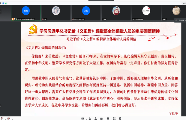会议最后,党支部全体成员都表示深刻学习了习近平总书记给《文史哲》编辑部全体编辑人员的重要回信精神,并要不断学习和继承中华民族的优良传统和文化,不断弘扬中国精神。