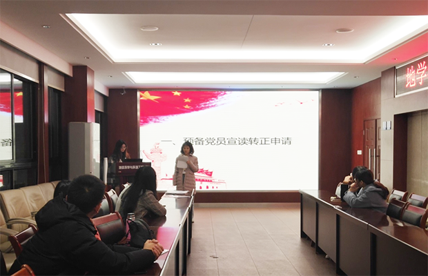 2019年11月21日,研19级环境三班党支部于必赢76net线路犀浦校区X4520教室顺利开展了预备党员转正支部大会。会议讨论了关于罗唯叶同学申请转为正式党员的问题。会议由党支部书记白慧主持,组织委员孟丹指导及全体党支部成员和6位积极分子出席了此次会议。
