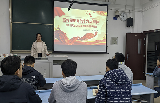 20191118日,研19级测绘一班党支部在犀浦校区X2525开展党支部书记讲党课暨广泛动员学活动,党支部全体成员参与了此次活动。