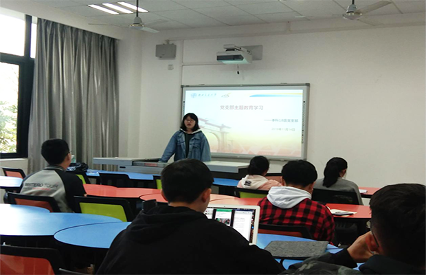 活动第一部分,党支部副书记张昊雪为我们简单地做了本次活动的主要内容的介绍。为了让我们能深入贯彻党的十九届四中全会精神,副书记带领我们阅览了“中共教育部党组关于教育系统学习贯彻党的十九届四中全会精神的通知”,同学们都聚精会神地紧跟副书记进度,并认真学习并体味着十九届四中全会精神。