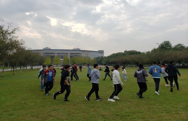 下午三点整,各部门成员准时在草坪场集合,并配戴上了自己的名片,便于成员间的称呼及相互认识。接着,成员们自由组队,五人一组,并以小组为单位开始开展素质拓展活动。