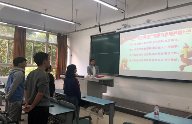 然后,谢奇材同志给大家讲解了自律准则的具体内容与要求,并带领全体参会党员、积极分子宣读了《中国共产党廉洁自律准则》。