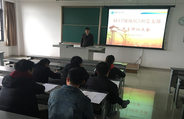 3月13日下午15:50,研17级地质二班党支部党员民主评议大会在X9401教室召开,出席本次会议的17级地质二班党支部书记何江同志、支部委员及支部全体党员,会议由何江同志主持。
