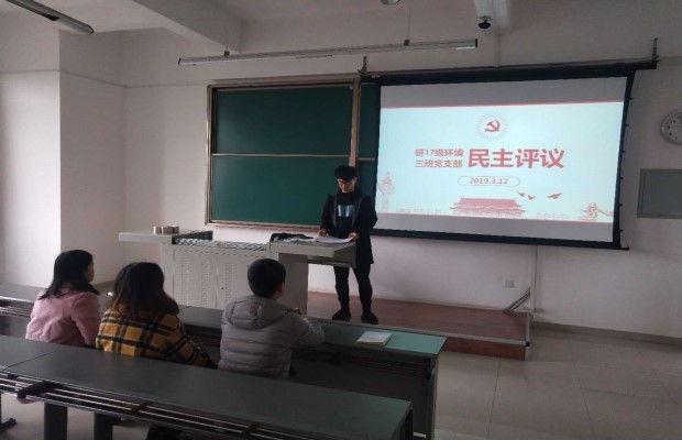 为了深入学习贯彻习近平新时代中国特色社会主义思想,推进“两学一做”学习教育常态化制度化,提升基层党组织组织力,严格党员教育管理监督,2019年3月12日上午11点,必赢76net线路官网研17级环境三班党支部于犀浦校区X9239教室召开了民主生活会进行了民主评议,并针对党员应知应会知识进行了专题学习会。支部全体党员参加,会议由支部书记毛鹏飞主持。