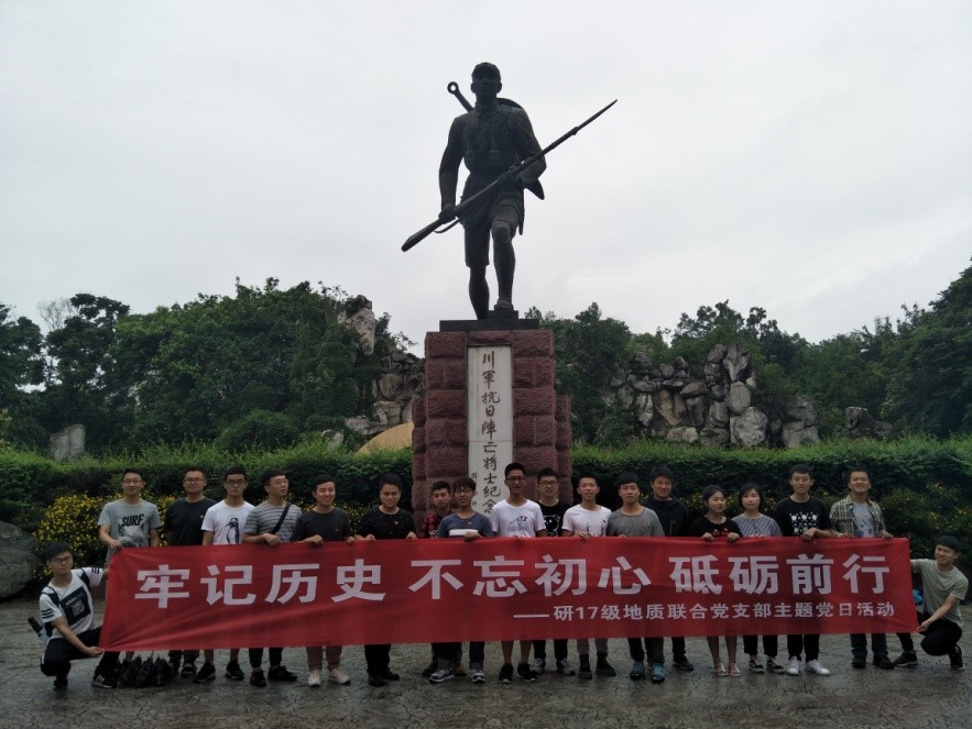 6月15日上午,研17级地质三班党支部联合研17级地质一、二班党支部全体党员以及积极分子前往成都市人民公园开展了“不忘初心争创一流”主题党日活动,活动由三个党支部书记袁彬、何江、李志浩共同负责。 本次活动的主题是“牢记历史,不忘初心,砥砺前行”。依托成都市人民公园的红色资源,缅怀革命先驱和学习先进典型,寻红色印记铭党恩,诠释青年员工振兴中华的使命,引导党员干部在传统洗礼中坚定信念。