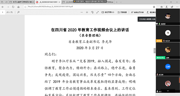 “抓好疫情防控不放松,抓好各项重要工作不懈怠”要求,为认真学习杨兴平同志、李江同志、李光华同志在四川省 2020 年教育工作视频会议上的讲话,贯彻会议精神。202043日晚上八点,研19级环境三班党支部于腾讯会议开展网上党日活动,会议由研19级环境三班党支部罗唯叶同志、熊源源同志共同组织。