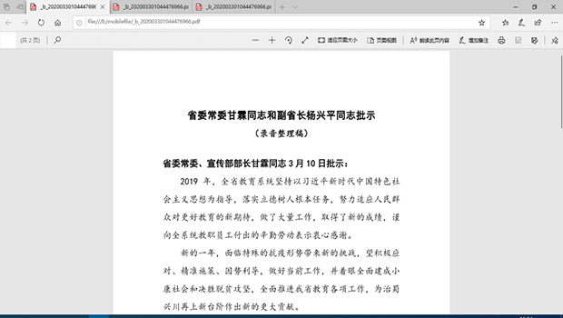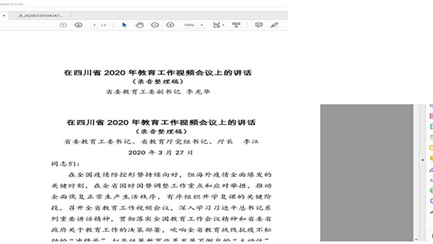 两位同志均对过去的2019年全省教育系统的工作表示肯定,以及对全系统教职员工表示衷心感谢。对于新的一年,面对特殊的抗疫形势,应积极应对挑战,精准施策,因势利导,做好当前工作,贡献为治蜀兴川再上新台阶作出新的贡献。