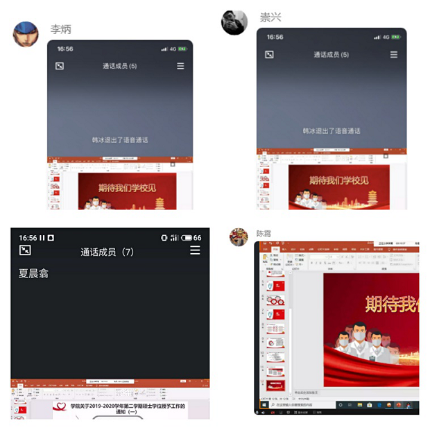 最后各位同志讲述了所处地区的防疫现状与毕业论文写作情况,大家都期待着疫情早日结束,尽早回到校园。此次在线会议圆满结束。