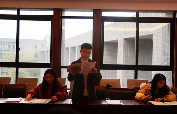 2019年1213日下午430,研19级环境一、二、三班党支部在X4520召开支部党员大会,讨论关于接受环境一班蒋梅同志、环境二班罗景城同志、环境三班熊源源同志按期转为预备党员的相关事项。出席本次会议的有党委副书记傅尤刚、辅导员崔宇龙以及各支部的员工党员。