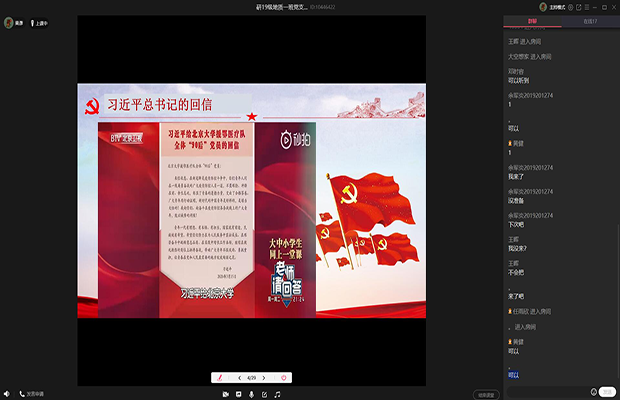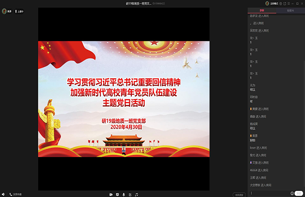 2020年04月30日下午14点整,研2019级地质一班党支部利用“QQ”平台开展“学习贯彻习近平总书记重要回信精神;加强新时代高校青年党员队伍建设”主题党日活动 。本次活动全体党员同志均准时参加,无人请假。本次云上主题党日活动由研19级地质一班党支部书记姬彦东同志主持。