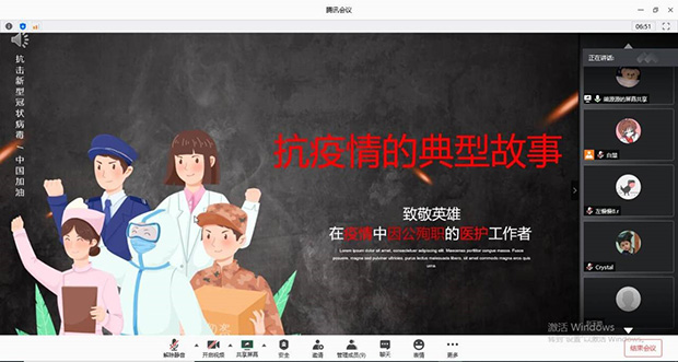 为致敬在这场特殊的疫情战役中中因公殉职的医护工作者和其他为战胜病魔而牺牲的各行各业的英雄们,研19级环境三班党支部于2020年7月8日20:30在“腾讯会议”APP开展了关于抗击疫情英雄人物故事介绍与感言的线上支部活动,会议由白慧同志主持,孟丹、罗唯叶、熊源源等支部成员相继发言介绍了我们战疫英雄的光辉事迹。