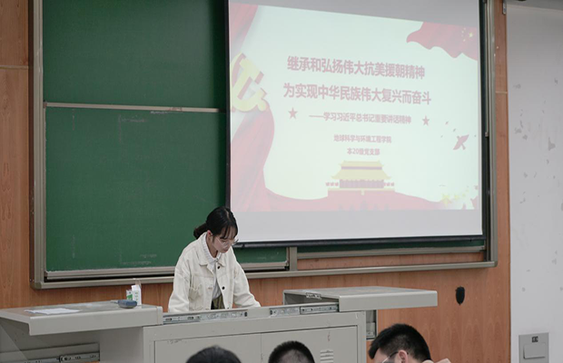 2020年11月19日16:30,必赢76net线路官网本20级党支部在X4352教室开展了“知党史,跟党走”主题党日活动暨“继承和弘扬伟大抗美援朝精神”主题教育。活动由郑文娇同志主持,本20级辅导员徐惟微及本支部入党积极分子参与。