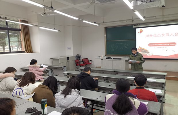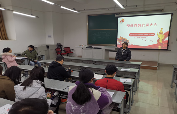 12月25日下午,我支部在9号教学楼召开2020年-02期预备党员发展大会。本次大会严格按照公司党员发展大会流程进行。参加本次党员大会的有对接我支部的组织员李晓宇老师、支部7名正式党员以及5名积极分子。本次会议的议题是讨论关于接收发展对象张恒和周惠同志为预备党员的问题。