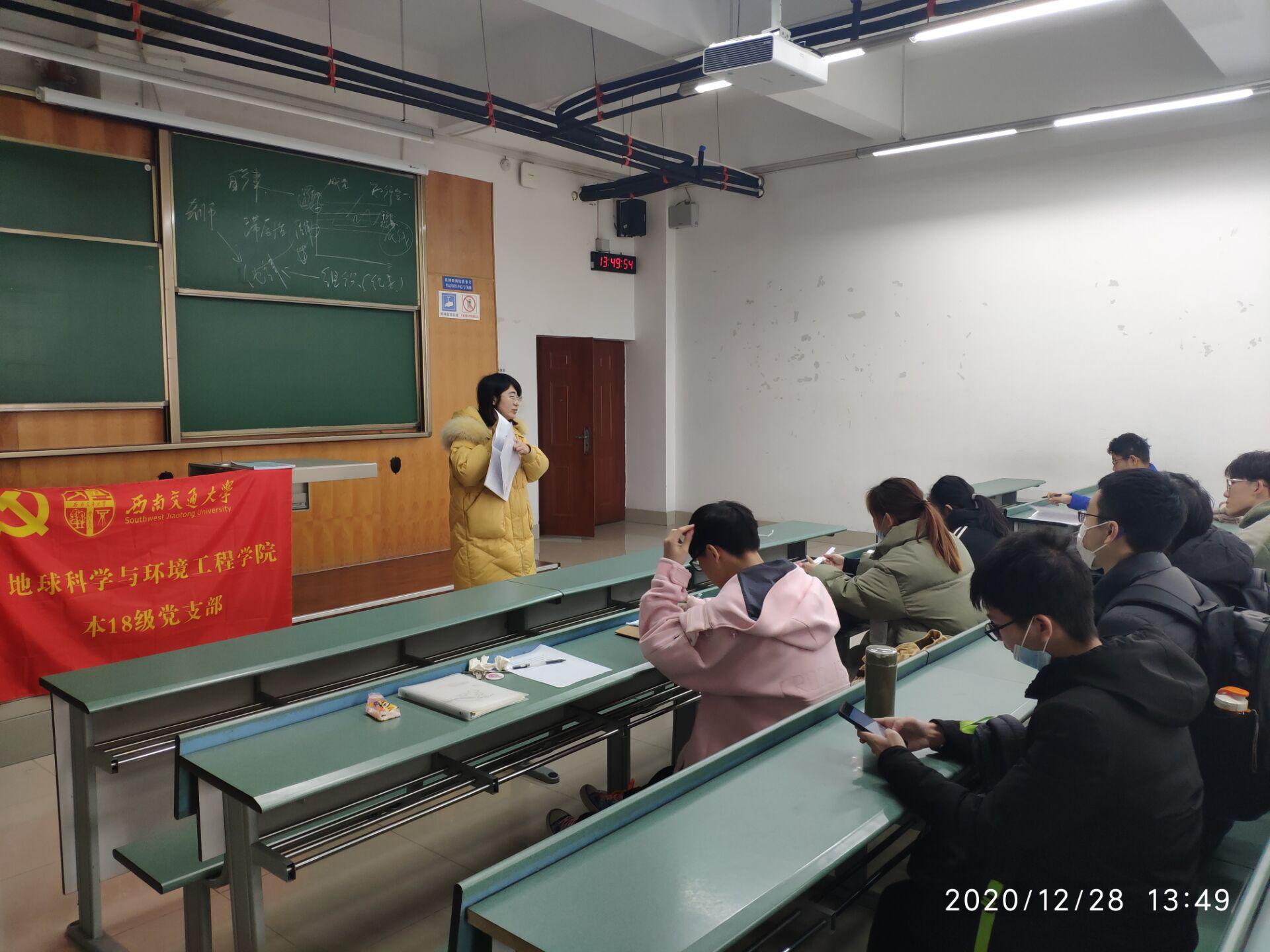 2020年12月28日中午,本18级党支部在X4358召开了党员发展大会,讨论了支部28位发展对象接收位预备党员的相关事务。本次会议由本18级党支部书记孙惠敏同志主持,对接组织员老师傅尤刚、杨都强、文强参与指导,支部10名员工党员配合工作。