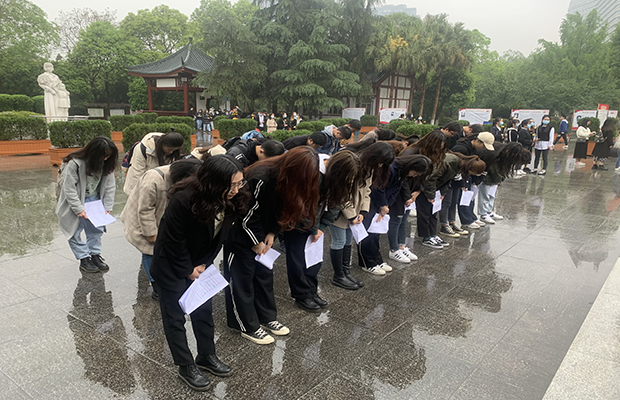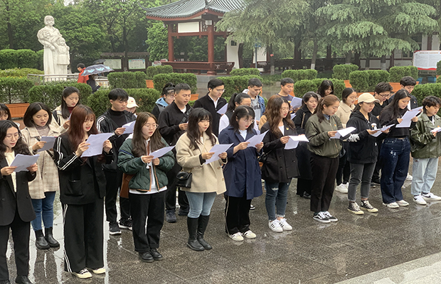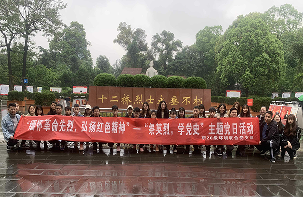 为深入贯彻习近平总书记关于缅怀先烈、崇尚英雄的重要论述,更好地发扬革命传统,弘扬英烈精神,传承红色基因,2021年4月10日上午,研20级环境三个班级组成的联合党支部在成都市十二桥烈士墓举行“缅怀革命先烈,弘扬红色精神”—“祭英烈,学党史”主题党日活动(图1,2)。