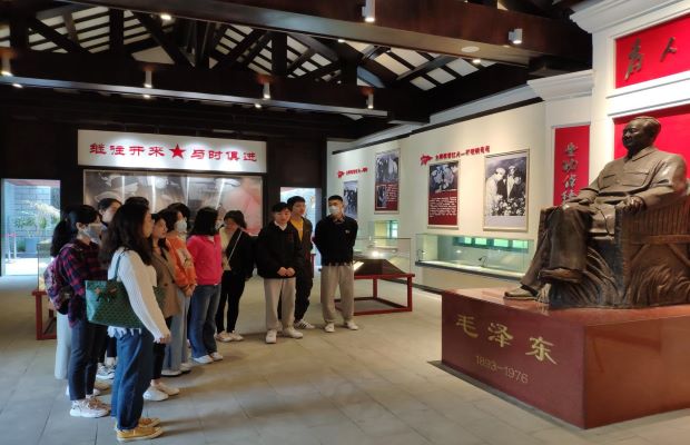 25日上午9时许,研19级环境一班党支部全体来到红光镇毛主席视察红光纪念馆门前,馆内庄严的气氛顿时使大家肃然起敬。来到大厅,毛主席塑像栩栩如生,大厅两旁布满毛主席视察红光社的历史图片,谈话稿件的影印件,纪念馆的发展,翻修历史,20世纪50年代的川西坝子农家人的生产、生活用具,及爱国卫生运动的发展历史。大家驻足观看,心中对革命先辈的敬意油然而生。