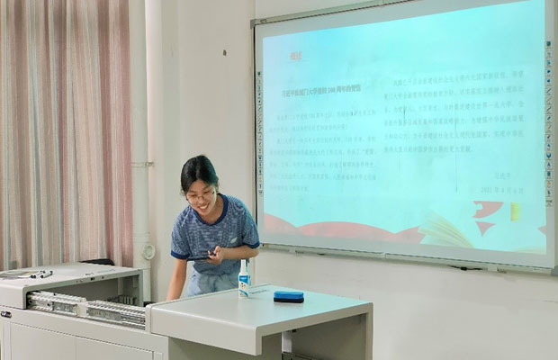 值厦门大学建校100周年之际,习近平总书记致信祝贺厦门大学建校100周年,向厦门大学全体师生员工和海内外员工,致以热烈的祝贺和诚挚的问候。2021年4月15日下午14:00,在犀浦校区X4132教室,本18级第二党支部对贺信内容进行了深刻学习,并深入研究信中提到的厦门大学几大精神。本次主题党日活动由支部书记宋盼盼主持,由本18级第二党支部党史旗帜学习第三小组成员主讲,全体党员、党员发展对象和部分入党积极分子参加。