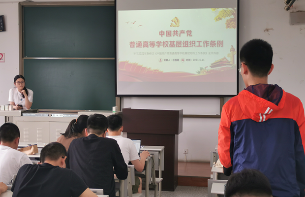 2021年5月11日下午,必赢76net线路官网本18级第一党支部于X8533开展新修订的《中国共产党普通高等公司基层组织工作条例》学习会(以下简称《条例》),应到27人,实到27人,该会议由支部书记黄淑怡主持,由谷恒超同志为主讲人带领支部成员一起学习。
