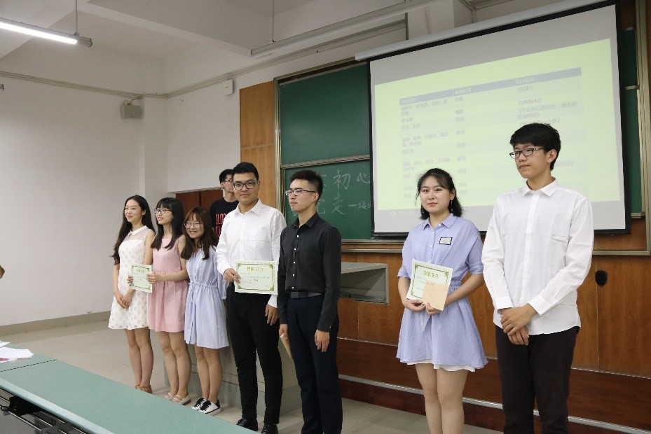 首先由翟琦老师致辞,表达了对本次活动的期待以及对同学们的鼓励。随后“不忘初心跟党走“主题团日活动的比赛环节正式开始。此次活动比赛形式多样,同学们各出奇招。比赛共进行了两个多小时,此次比赛分别设立了一、二、三等奖和优秀奖,最后由主持人宣布了本次活动的最终结果:谢峥宇、张逸萱、庞茵、薛雨薇带来的合唱的《国家》获得一等奖,常根旺、杨旭东朗诵的《少年中国说》获得二等奖,张茜、彭柏朗诵的《不忘初心跟党走,情系祖国诵辉煌》获得三等奖。翟琦老师颁奖并对本次活动进行了总结后,比赛也画上了圆满的句号。