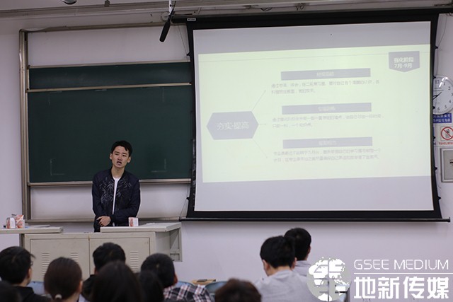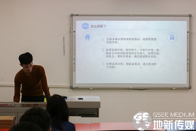 陈柔均从考研or保研、初试、复试三个方面向同学们做了介绍。首先,陈柔均向同学们简要的介绍了保研的条件,以及如何争取保研的资格,他提到了保研的加分项目及如何提高保研分。他又介绍了初试的考试科目级基础的复习方法及复试的具体流程。