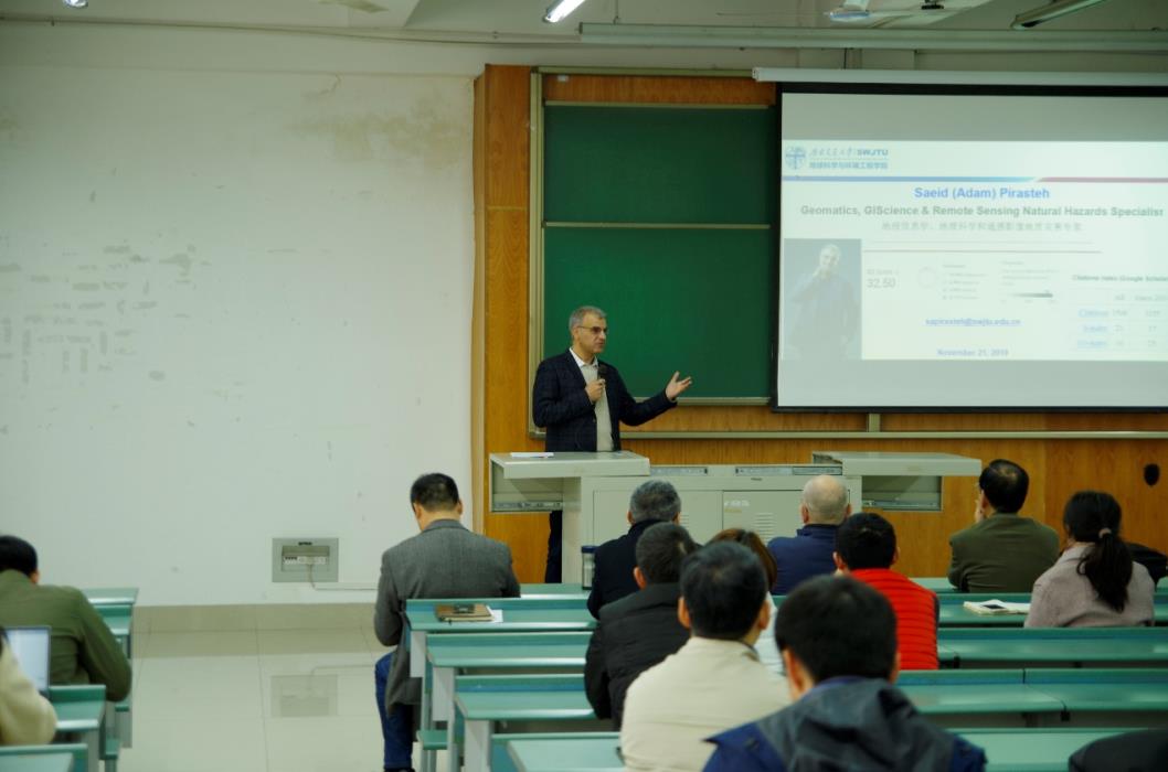 Pirasteh首先围绕个人研究方向进行自我介绍,接着围绕个人经历、教学方向、地理分布、现阶段学术计划,以及今后的学术计划等方面做了详细的报告。最后,Saeid Pirasteh希望在中国和交大的老师们一起为现在和未来一代建立一个更好的环境和更安全的世界。