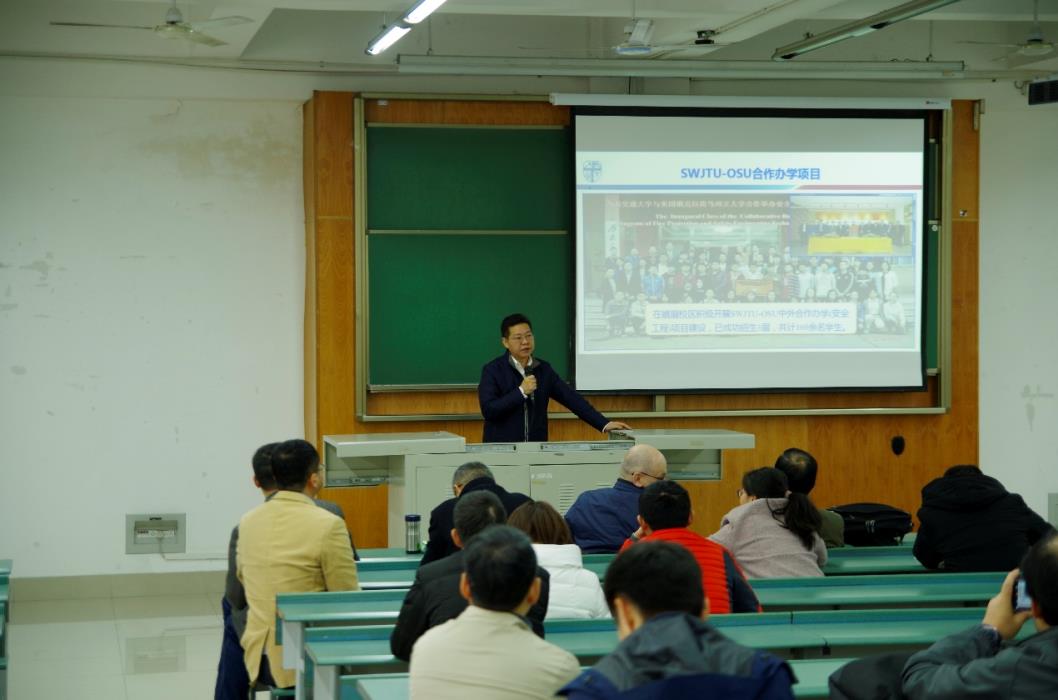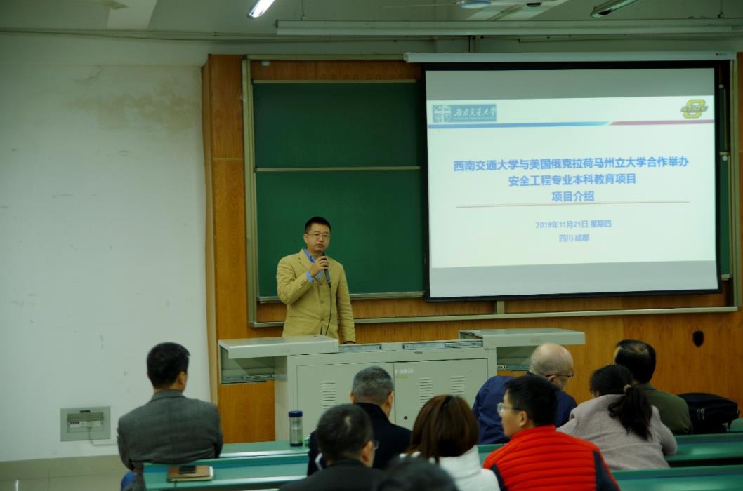 副经理兼副书记许军华,对必赢76net线路与美国俄克拉荷马州立大学合作举办安全工程专业本科教育进行项目介绍。重点介绍了本项目的团队情况、设施建设、制度建设、保障体系、学术情况、就业前景,以及面临的挑战等。