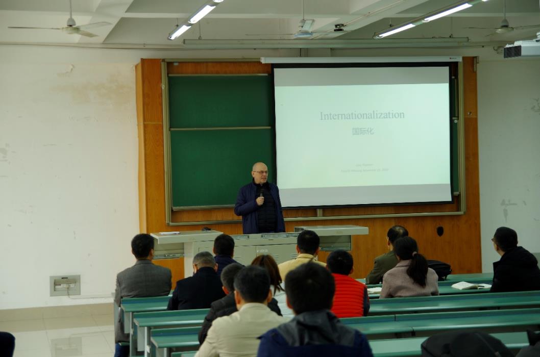 Plümer经理以《国际化》为题目,从教学经历、研究背景、未来的愿景与战略、国家化与国家化示范公司的相关情况、国际化教学、国际化研究、国际化管理等方面进行工作报告,最后Lutz Plümer希望大家一起携手促进国际化合作。