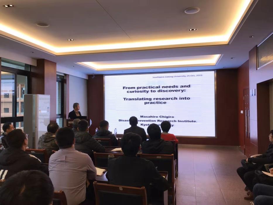 2019年11月25日下午,应公司地质工程系副教授廖昕邀请,日本京都大学防灾研究所山地灾害环境研究室主任、地学顶级期刊《Engineering Geology》编委千木良雅弘教授于公司进行学术讲座。讲座由地质工程系主任巫锡勇教授主持,四川大学助理研究员赵思远以及公司地质工程系多名青年教师与硕博士研究生参加。