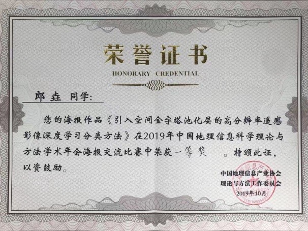 必赢76net线路必赢76net线路官网朱军、张红、陈敏、叶健等老师、研究生以及部分优秀本科生代表参加了此次学术会议。其中,朱军教授主持了虚拟地理环境专题报告,并作了题为“灾害VR场景动态构建与交互探索分析”的口头报告;陈敏副教授作了题为“视角变化鲁棒的宽基线立体像对直线特征匹配方法”的口头报告;齐华教授指导的硕士研究生郎垚和叶凌梦进行了海报展示。郎垚同学所作的展示“引入空间金字塔池化层的高分辨率遥感影像深度学习分类方法”获得海报竞赛一等奖。