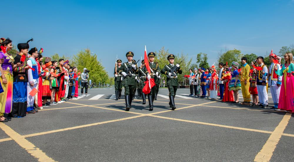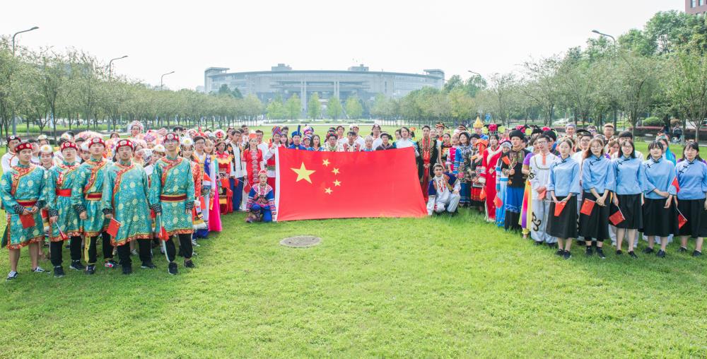 活动中,各民族同学身着民族盛装、手持五星红旗,像花团一样、像石榴籽一般,依次簇拥在升旗台、校史馆、机车博物园等各个校园地标里,流转于牵引动力国家重点实验室、陆地交通地质灾害防治技术国家工程实验室、高速列车数字化仿真平台内的各大重器间,青春、靓丽、灵动而活泼,成为了校园里一道美丽的风景线!