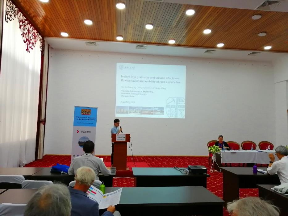 公司程谦恭教授研究团队博士研究生林棋文、李坤参加了本次会议,在“地震与滑坡灾害”分会场中,针对高速远程滑坡动力学机理这一国际热点问题,分别进行了相应的主题报告。林棋文博士进行了题为“Effects of rock mass discontinuities on the deposit