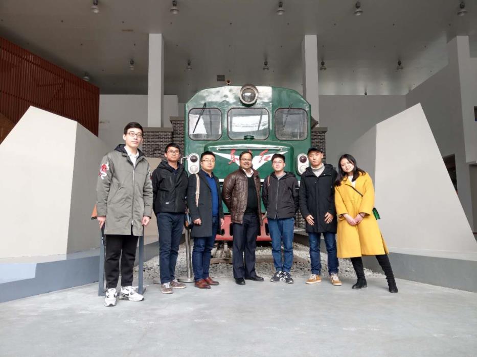 12月19日下午,Ranjan Kumar Dahal教授在杨虎峰老师等的陪同下参观了公司校史馆、机车博物馆和地质系实验室。