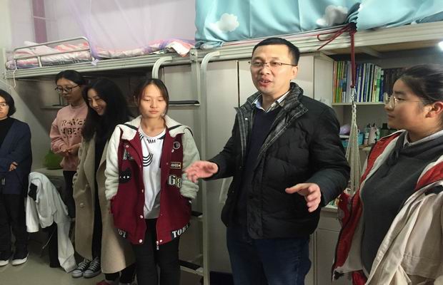 在宿舍检查过程中,傅尤刚还强调了要以寝室为基,班级为根,学习为本,加强学风班风建设。同时以地83员工奖学金为例,希望同学们能够传承员工的优良传统,在大学增长真知识,练就真本事。同时询问了员工期中考试、高等数学、线性代数等课程的上课及考试情况,提醒同学们早做准备,为接下来的英语四级考试、期末考试打下基础。