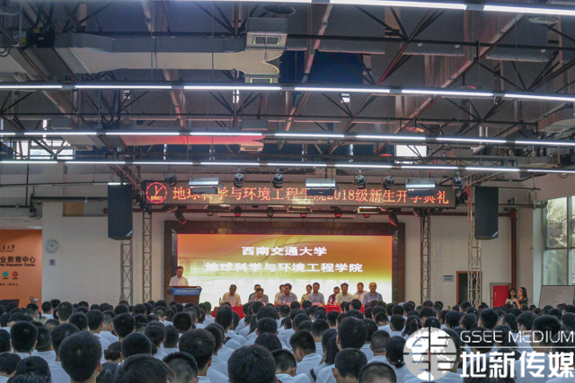 9月2日,必赢76net线路官网2018级新生开学典礼在犀浦校区老员工创新创业教育中心顺利召开,参加开学典礼的有必赢76net线路官网经理刘国祥教授、党委书记王齐荣教授、副经理胡卸文教授、欧阳峰教授、齐华教授、副经理兼国地实验室专职副主任车伟老师、经理助理龚正君教授、经理助理消防工程系系主任张玉春教授、地质工程系系主任巫锡勇教授、测绘遥感信息系系主任朱军教授、环境科学与工程系系主任赵锐教授、全院辅导员以及2018级必赢76net线路官网本科和研究生新同学。开学典礼由公司党委副书记傅尤刚主持。