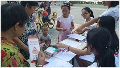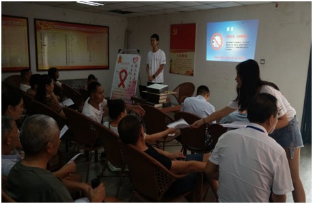 此次三下乡活动,我们以防艾禁毒知识讲座、填写问卷调查、发放知识手册和播放禁毒防艾电影四个模块来开展,内容丰富、形式多样。队员们精心筹备讲座,对如何预防艾滋和毒品进行了宣讲,得到了社区居民的一致好评。在社区广场上,队员们对各个年龄段的社区居民们进行了随机的问卷抽样调查,热情的居民们都十分配合,“老员工的问卷调查啊,我们一定配合。”同时我们精心制作的宣传手册也吸引了很多社区居民的注意,人们纷纷凑到摆台处提出他们的疑惑,队员们也耐心地一一回答。傍晚时分,夜幕降临,队员们在社区广场上播放禁毒防艾的电影“最爱”,许多乘凉散步的居民都驻步观赏,直至电影结束之后,不少居民才依依不舍的离去。可以说,此次活动取得了圆满的成功。