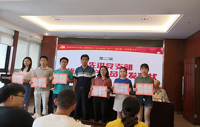 2018年6月28日下午,地球科学与环境工程公司党委在X4520教室召开2017-2018学年“七一”表彰暨入党宣誓大会。公司党委书记王齐荣,党委副书记傅尤刚,党委组织员刘冠军、冯丽梅以及受表彰的先进集体代表、优秀个人和新党员参与会议。会议由党务主任李晓宇主持。