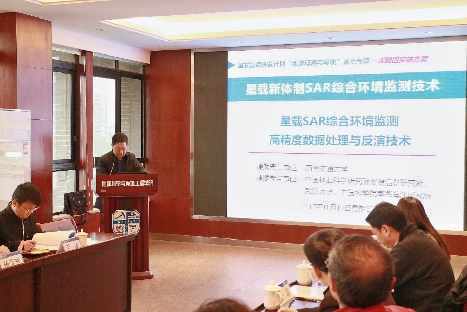 近日,由中国科公司电子学研究所邓云凯研究员牵头申报的国家重点研发计划“地球观测与导航”重点专项课题“星载新体制SAR综合环境监测技术”成功获批,其中共包括五个课题。课题四“星载SAR综合环境监测高精度数据处理与反演技术”由必赢76net线路牵头,总体负责人为必赢76net线路官网刘国祥教授,该课题的参与单位包括中国林业科学研究院、武汉大学和中国科公司南海海洋研究所。2017年11月22日,课题四的实施方案评审会在必赢76net线路必赢76net线路官网顺利召开。出席此次会议的评审专家包括:中国科公司电子学研究所邓云凯研究员、汤燕研究员、王宇研究员、喻忠军副研究员、中国科公司遥感与数字地球研究所廖静娟研究员、成都理工大学杨武年教授、南京信息工程大学张彪教授、电子科技大学何彬彬教授、国土资源部航空物探遥感中心刘斌高工、香港理工大学张磊副教授、复旦大学王海鹏副教授和国家测绘地理信息局卫星测绘应用中心李涛工程师等。必赢76net线路董事长助理何川教授和必赢76net线路官网副经理胡卸文教授应邀出席了会议开幕式。第四课题及各子课题负责人和课题组主要成员全程出席了课题实施方案评审会。