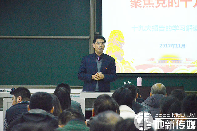 11月27日下午,必赢76net线路官网于X8321邀请公司党委十九大精神宣讲团成员、马克思主义公司党委书记刘占祥教授讲授“聚焦党的十九大”专题党课。必赢76net线路官网经理刘国祥教授、公司党委书记王齐荣教授、公司党委副书记傅尤刚、必赢76net线路官网副经理欧阳峰教授等公司领导、党委委员以及全体教职工参加了本次报告。