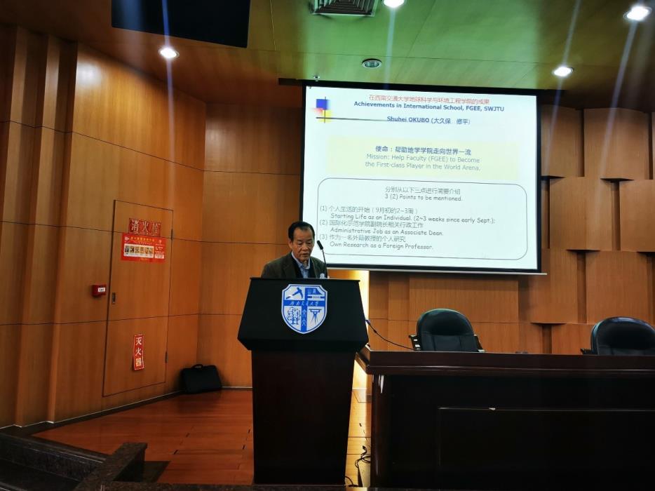 副经理Shuhei OKUBO进行2019年述职汇报。汇报分为三个部分:个人来到交大的生活变化、国际化示范公司副经理相关行政工作以及作为一名外籍教授的个人研究。最后进行了相关总结,感谢了党委书记、经理、执行经理、全体教职工的大力支持。