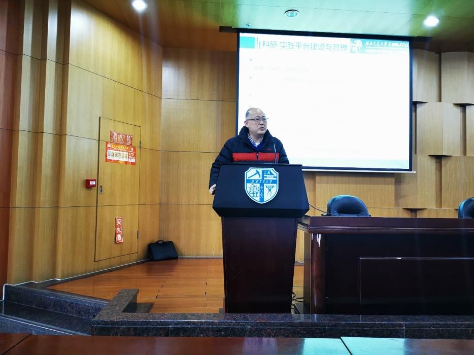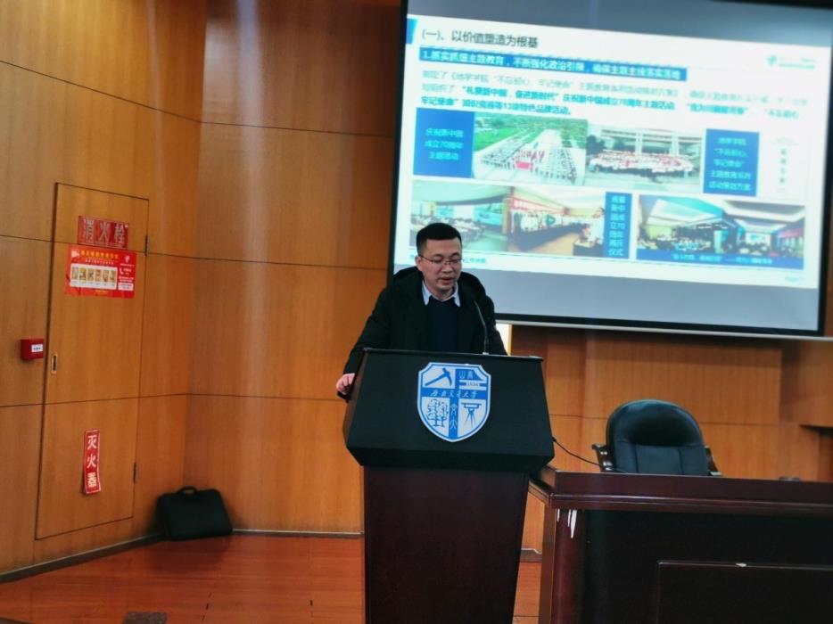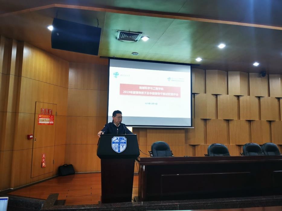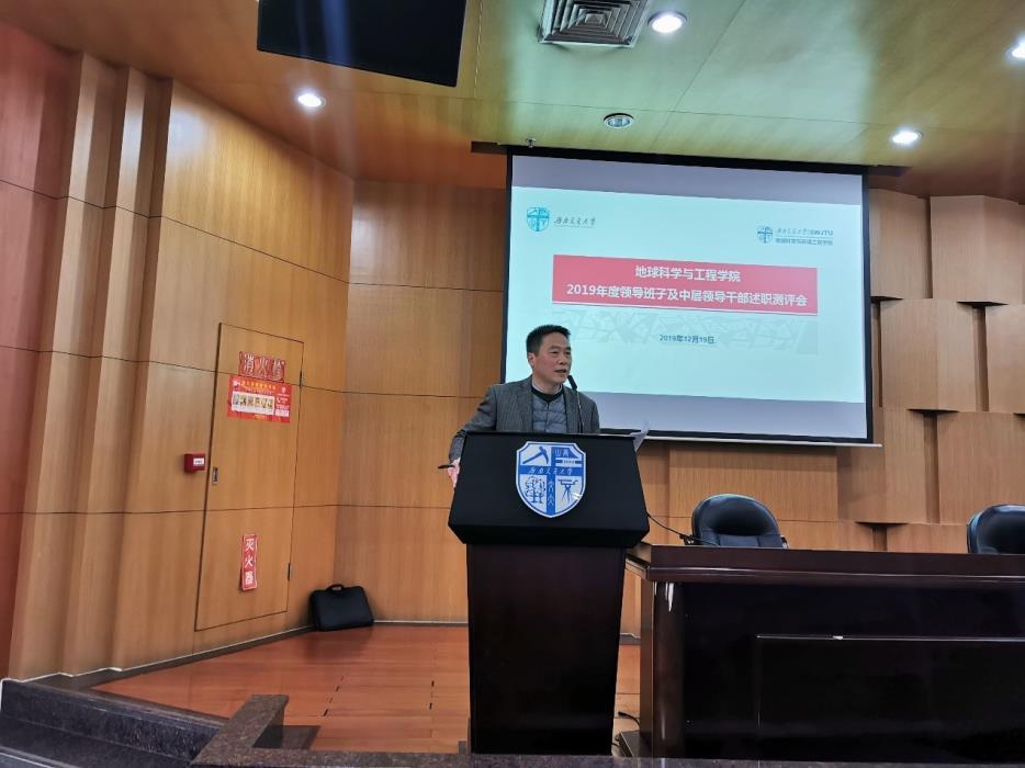副经理欧阳峰进行2019年度个人述职。主要围绕双一流本科建设工作、测绘工程专业认证工作、2019级培养方案修订、四川省教改项目、青年教师教学竞赛、2020级推荐免试研究生工作、升机教学名师、测绘工程卓越班纳入学员管理等方面做工作汇报。
