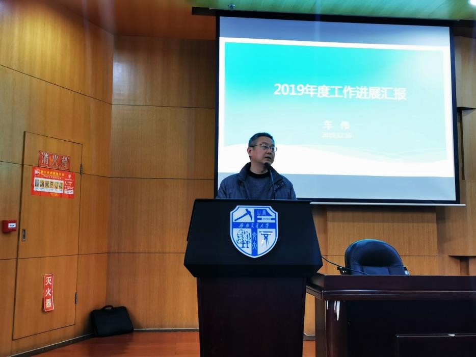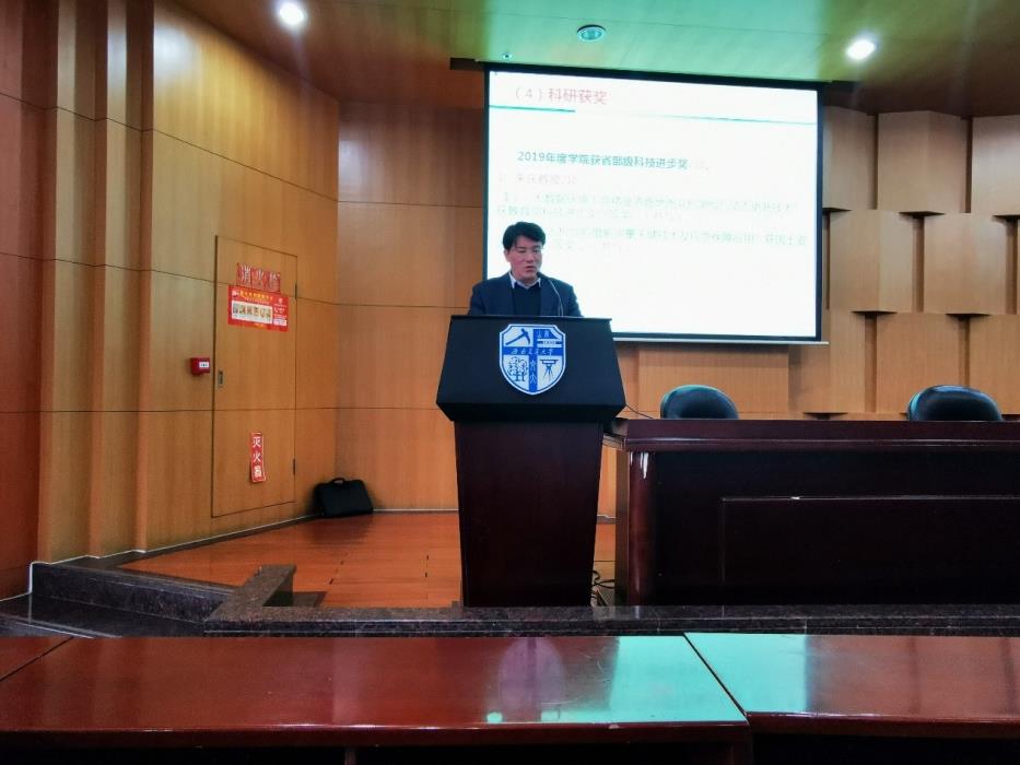 副经理齐华进行2019学位与研究生教育年度考核汇报与个人述职。主要围绕研究生招生、教学与管理、学位论文及授位管理、导师队伍建设、非全日制专业学位研究生教学与管理、综合管理、其他项目等七个方面做考核汇报。